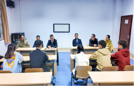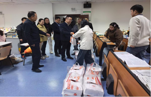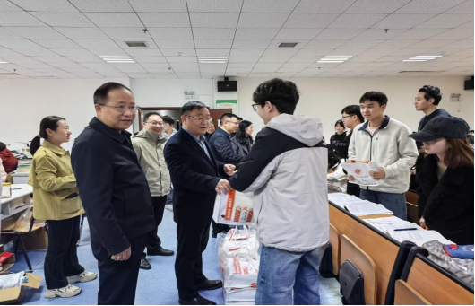 随后,校领导一行前往学校图书馆,在五楼会议室与非医学部考研学生代表展开深入座谈。现场氛围热烈而温馨,校领导细致了解大家的复习节奏、心态调整情况,以及学习生活中存在的实际问题,对同学们提出的诉求逐一回应,并现场协调相关部门跟进解决,全力为大家营造良好的备考环境。发放慰问礼包后,两位校领导结合学校育人理念与自身经验,为学子们送上殷切嘱托与备考指导。