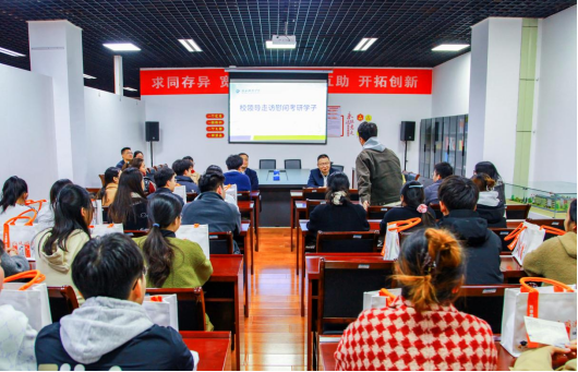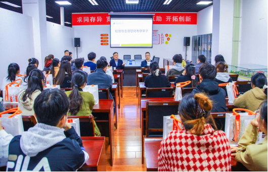 李志雄副校长围绕“凝心聚力、决胜考研”提出三点期望。一是“放心备考”,他强调学校坚守“以生为本”初心,将全力保障备考期间学习生活需求,解决后顾之忧,让同学们心无旁骛投入复习;二是“潜心冲刺”,当前正值考研复习关键期,他希望同学们沉心静气梳理知识框架、回顾核心考点,通过精准刷题巩固薄弱环节,以平和心态扎实积累,不被焦虑打乱节奏;三是“安心求助”,针对备考中可能遇到的困惑,他提到学校“辅导员+班导师+班助理”三位一体管理模式,正是为同学们提供的全方位成长支持体系,无论学习难题还是生活困扰,可以随时与辅导员、班导师沟通,学校永远是学生最坚实的后盾。