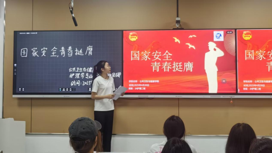 为深入贯彻落实总体国家安全观,增强学生的国家安全意识,提升防范和抵御安全风险能力,4月6日,公共卫生与健康学院开展“守护国家安全,践行青年担当”主题班会活动。班会紧密结合当前国家安全形势与经济社会热点,引导学生深刻认识国家安全的重要性,明确新时代青年的责任与使命。