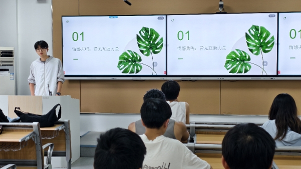班会伊始,各班班长紧扣“5·25”谐音“我爱我”的心理健康日内涵,以温情话语点明活动主题,强调集体温暖对学生成长的重要意义。随后,一段展现校园互助场景的短视频,唤起了同学们对身边温暖瞬间的美好回忆与情感共鸣。在“温暖故事分享”环节,不少同学踊跃发言,分享学习生活中被同学关怀的感人经历:生病时室友帮忙记笔记的细致,情绪低落时朋友耐心倾听的陪伴……一个个真实生动的故事,让大家深切体会到集体生活中“双向奔赴”的温暖力量。