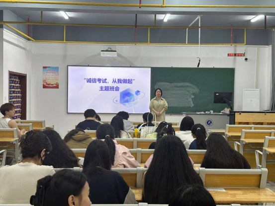 为严肃考风考纪,弘扬诚信学风,营造公平公正的考试环境,湖北科技学院音乐学院于4月13日晚18:40在揽胜楼教室组织召开“诚信考试 从我做起”主题班会。学院老师及全体学生共同参与,通过专题宣讲、案例警示、互动承诺等形式,引导学生树立诚信意识,践行诚信诺言。