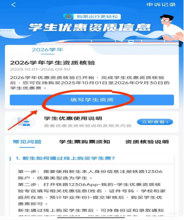 根据教育部办公厅国铁集团办公厅《关于进一步便利普通高等学校学生购买优惠火车票的通知》(教学厅函〔2023〕4号)精神,普通高等学校在校生在铁路12306客户端学生专区中准确填写个人信息和与学生证上一致的优惠乘车区间,经铁路12306系统与学信网进行线上信息比对,完成学生优惠资质核验通过后即可享受火车票优惠购票政策。学校从2025年起不再为新生单独发放纸质的火车票优惠卡,为保障学生顺利乘车,现将火车票学生优惠资质线上核验有关事项通知如下: