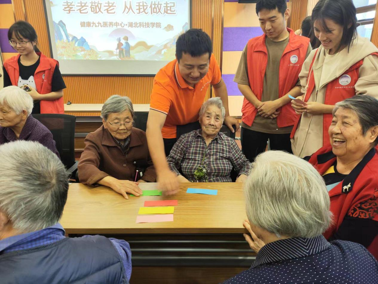 为弘扬中华民族尊老敬老的传统美德,2023年10月14日至15日,湖北科技学院二十八名学生志愿者前往位于咸宁市书台街的九重锦养老院,开展“孝老敬老从我做起”重阳主题志愿服务活动。本活动由湖北科技学院青年志愿者协会主办,资环学院团委学生会承办。