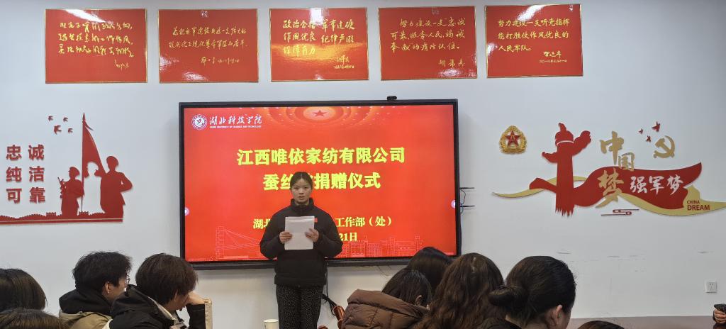 12月21日下午,江西唯依家纺有限公司捐赠的“爱心蚕丝被”发放仪式,在教一一楼武装部会议室温情举行。学生工作部负责人潘婷同志,大学生资助中心周承芳、丁文,各学院负责资助工作的教师代表及学生代表共同出席,仪式由学生工作部副部长杨孝主持。潘婷同志亲手为学生们发放了满载爱心的蚕丝被。