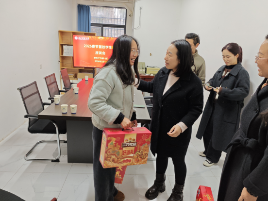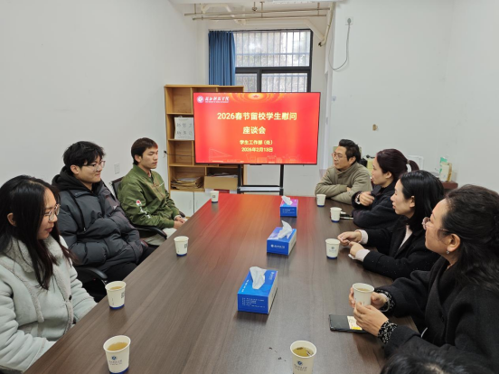 新春将至,年味渐浓。2月13日,党委学生工作部(处)在西区14栋学生宿舍126活动室,组织召开了2026年春节留校学生慰问座谈会。学工部部长潘婷、副部长孙萍以及相关院部辅导员、班主任,与体育学院蔡宜运、邓希言,口腔与眼视光医学院孙凌三名留校学子围坐交流,现场气氛温馨融洽。