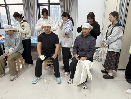 演练环节,同学们两两结对,在“伤员”与“救护员”的角色互换中沉浸式打磨技艺。授课老师们穿梭于各组之间,俯身指导、精准纠偏,让每一次按压、每一圈包扎都趋于规范。从最初的生涩忐忑,到后来的从容笃定,青春的身影在实践中淬炼出守护生命的底气,让急救的力量在指尖传递、在校园生长。