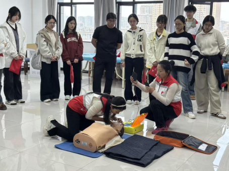 实操现场,干货满满。授课老师围绕心肺复苏、AED应用及创伤包扎展开精细化演示,从按压力度的刚柔并济,到包扎手法的细致入微,逐一点拨。现场师生互动频繁,手把手的传授将抽象知识具象化,让每一位参训者在实操中掌握真本领,以所学之技,赴生命之约。